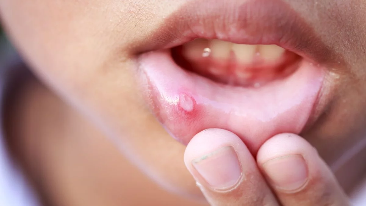 wygląd – na błonie śluzowej warg wewnątrz jamy ustnej tworzą się okrągłe lub owalne plamki, które przypominają owrzodzenia;
