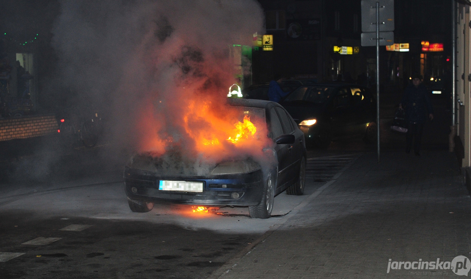 Pożar samochodu na ul. Wrocławskiej w Jarocinie