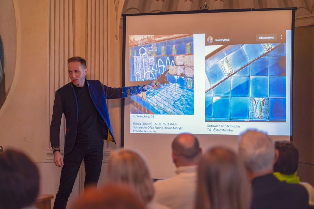 Tydzień później, w niedzielę (17 marca) w pałacowych wnętrzach odbyło się potkanie autorskie ze Zbigniewem Zachariasikiem. Zgromadziło ono blisko 40 uczestników. Młody autor z Poznania jest przewodnikiem miejskim, twórcą bardzo popularnego bloga oraz wyjątkowego wydawnictwa albumowego poświęconego wybranym klatkom schodowym stolicy Wielkopolski. W ponad 1,5-godzinnym wykładzie przedstawił najciekawsze realizacje pokazując kompleksowość projektowania tych wydawałoby się, niepozornych przestrzeni. Nie zabrakło wspaniałych zdjęć schodów, witraży, płytek i odniesień do źródeł inspiracji. W trakcie spotkania i po jego zakończeniu, pojawiło się sporo pytań, co potwierdza zainteresowanie tematem. Autor myśli nad kolejnymi tomami, w których znalazłby się również realizacje z naszego regionu.