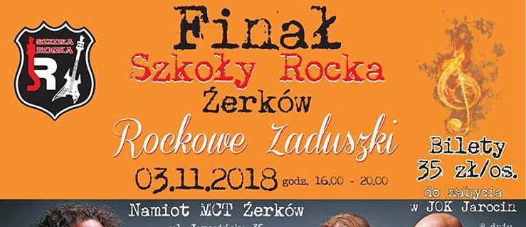 Rockowe Zaduszki stanowią w tym roku finał projektu "Szkoła Rocka". W dolnej sali MCT, w godzinach od 14.00 do 16.00, będzie można obejrzeć najlepsze prace zgłoszone na konkurs "Powstanie Wielkopolskie oczami młodego pokolenia". Zaplanowano też wystawę zdjęć Michała Skrzypczaka - fotografującego Wieżę Rocka oraz inne wydarzenia kulturalne mające miejsce w Żerkowie.