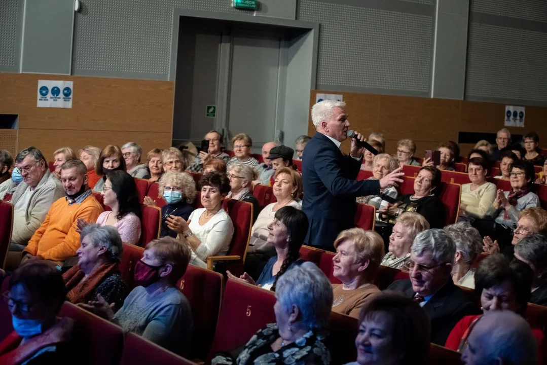 Paniom, w imieniu burmistrza Jarocina Adama Pawlickiego, życzenia, by czas spędzony w Jarocińskim Ośrodku Kultury był wytchnieniem od trudnej, aktualnej sytuacji u naszych wschodnich sąsiadów złożyła dyrektorka Biblioteki Publicznej Miasta i Jarocin - Agnieszka Borkiewicz. Uroczystość odbywała się w Jarocińskim Ośrodku Kultury, który obecnie jest filią biblioteczną i odbywają się w nim zajęcia w ramach Domu Dziennego Senior+. We wtorek 8 marca, czyli w Dzień Kobiet, prawie 350 osób - i to nie tylko panie - świetnie się bawiło przy piosenkach Krzysztofa Koniarka, który potrafił zachęcić publiczność również do wspólnego śpiewania. Na zakończenie każdy z uczestników koncertu otrzymał słodki upominek.