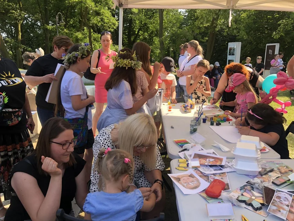 Najdłuższe kolejki ustawiały się jak zwykle do malowania twarzy, które prowadzono w kilku miejscach na raz. W akcję włączyły się również mieszkające w Jarocinie Ukrainki. Największym talentem plastycznym wśród nich wykazała się Olga, która na buziach tworzyła małe dzieła sztuki.