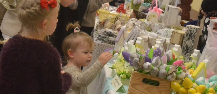 Kiermasz wielkanocny. Świąteczne dekoracje stołów. Palmy. Pisanki. Powiat jarociński. Wielkanocne stoły. Wielkanocne dekoracje. Święta. Wielkanoc 2018.