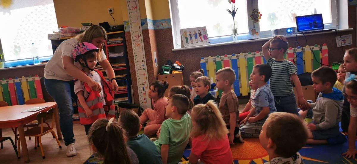 Zarówno w przedszkolu, jak i w szkole podstawowej, uczniowie odpowiadali na pytania dotyczące prawidłowego przygotowania się do jazdy. Dowiedzieli się, z jakich elementów składa się rower oraz jakie jest ich znaczenie dla bezpieczeństwa. Omawiane były także kwestie związane z oświetleniem i dzwonkiem, które pełnią istotną rolę podczas poruszania się w terenie. Dzieci poznały kilka podstawowych zasad kulturalnej i bezpiecznej jazdy oraz miały okazję przymierzyć kaski i kamizelki odblaskowe, które są niezbędne dla ich bezpieczeństwa na drodze.