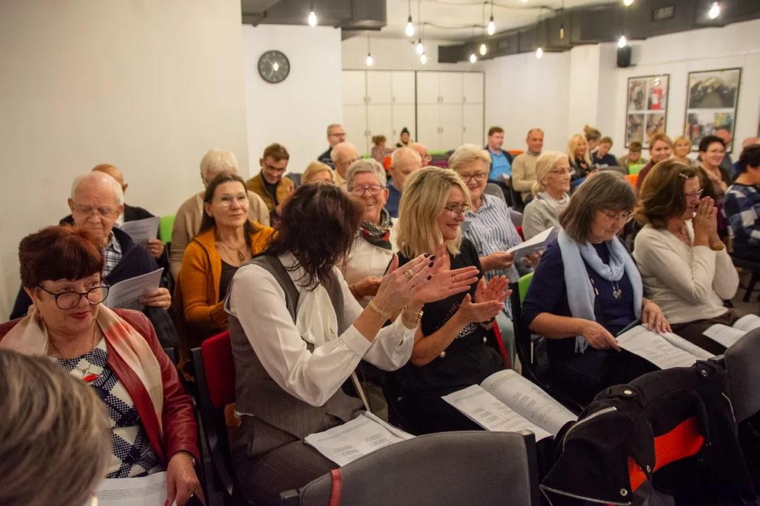 "Wielkopolskie Śpiewanie" zainicjował 21 lat temu w Poznaniu nieżyjący już niestety prof. Stefan Stuligrosz. W akcję przez lata włączało się wiele miejscowości. Również w Jarocinie organizowano wspólne wykonanie pieśni patriotycznych, harcerskich i biesiadnych. Po śmierci założyciela i dyrygenta "Poznańskich Słowików" w wielu miejscach zaprzestano kultywowania tej tradycji. W naszym mieście akcja przetrwała. Nie zaszkodziła jej nawet roczna przerwa spowodowana czasem pandemii. Przez ponaad dwie dekady amatorzy śpiewu spotykali się już w różnych miejscach m.in. w holu JOK-u, na placu przed domem kultury czy na rynku, ale w ostatnich kilku edycjach akcji upodobali sobie Kamienicę Kultury. Jest to również dobre rozwiązanie, ponieważ uczestnicy nie są skazani na kaprysy jesiennej aury. Miłośnicy śpiewu spotkali się w Sali Zgody również w środowy wieczór (1 października).