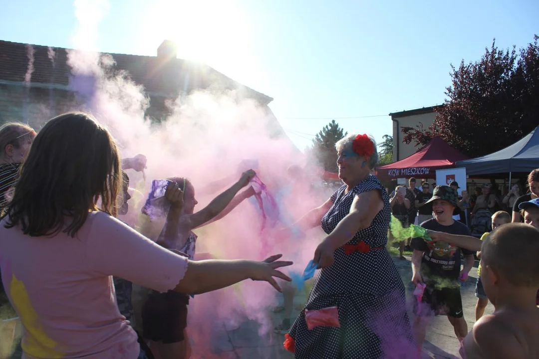 Festyn połączony był z piątą edycją akcji "(nie) zapomniane miasto Mieszków". Jest to okazja, aby przypomnieć historię miejscowości, która kiedyś posiadała prawa miejskie. Poprzednia, czwarta edycja odbyła się w 2017 roku. Na zakończenie odbyła się zabawa taneczna. Zanim jednak na mieszkowskiej "patelni", czyli na placu przy WOK-u pojawili się miłośnicy tańca, najpierw odbyła się bitwa na kolorowe proszki holi. Oprócz najmłodszych mieszkańców wzięła w niej udział również pani sołtys, która w ogóle się nie oszczędzała. Towarzyszyły jej dwie panie z KGW - Katarzyna Paluszkiewicz i Dorota Krajewska. Mimo upału i wielu innych imprez w okolicy, mieszkańcy nie zawiedli i licznie przybyli na festyn rodzinny.