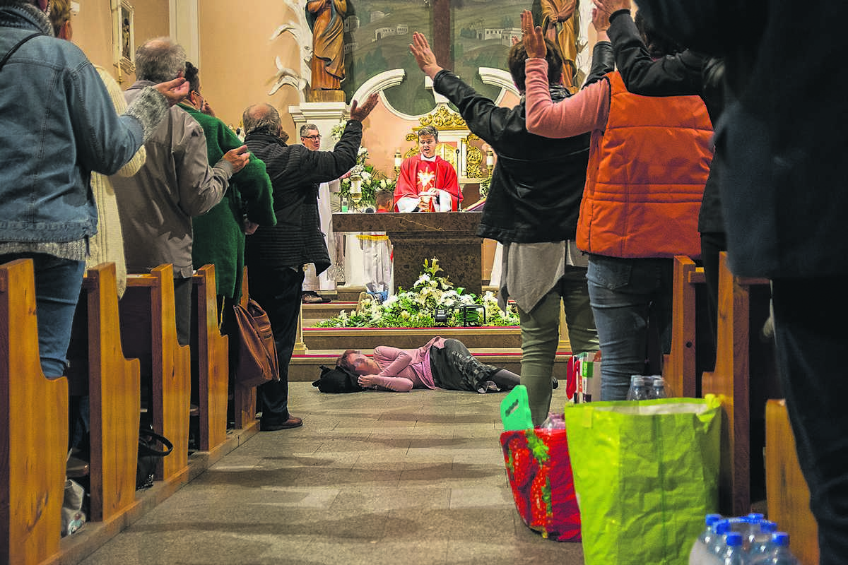 Padają lekko na posadzkę. Nie straciły przytomności, nie zemdlały, nikt im nie pomaga. Na twarzy jednej maluje się uśmiech… Teraz ogarnia je Duch Święty…