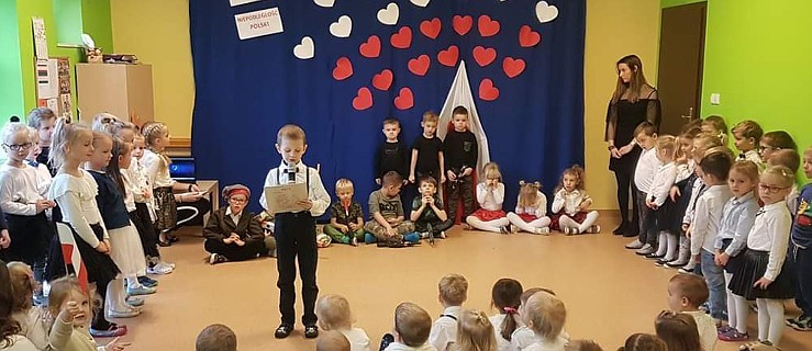 Przedszkolaki recytowały patriotyczne wiersze i śpiewały piosenki. Występ przeplatany był krótkimi scenkami przedstawiającymi historię naszego kraju.