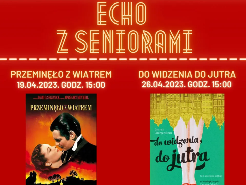 Szczególnym powodem do dumy jest to, że w kinie "Echo" od kwietnia pokazywane będą klasyki kinematografii, które wypada znać, a które trudno „upolować” w kinie czy nawet w telewizji. Poza tym obejrzenie takich arcydzieł na dużym ekranie to jest zupełnie inne obcowanie ze sztuką. Cykl rozpoczyna się w najbliższą środę (19 kwietnia) od "Przeminęło z wiatrem". Seanse dla seniorów odbywać się będą jak zwykle o godz. 15.00. I jak zwykle na osoby 60+ oprócz tańszego biletu za 5 zł czekać będzie kawa i coś słodkiego. Będzie też okazja dla pozostałych widzów, ponieważ każdy seans będzie powtarzany tego samego dnia o godz. 19.00.