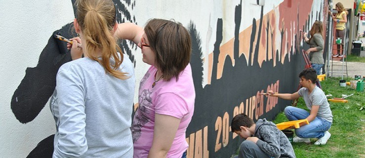 Mural powstał podczas Jarocin Festiwalu w 2007 roku i od tego czasu nie był odnawiany. Zabiegał o to przewodniczący osiedla Zbigniew Kaczmarek. Z uczniami przyjechał ich nauczyciel - Filip Fajfer - który jest jednocześnie pracownikiem Muzeum Regionalnego w Jarocinie. Jutro prace nad odświeżeniem grafiki kontynuowały będą kolejne grupy młodzieży z tej samej szkoły.