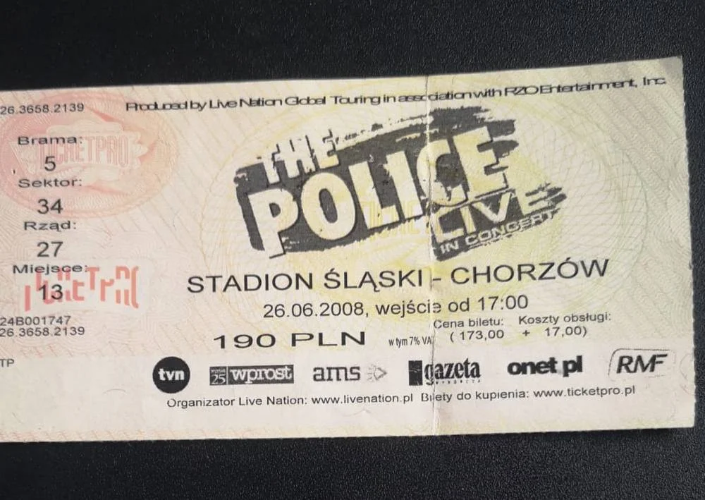 Pytam, który koncert był najlepszy ale okazuje się, że wszystkie były świetne. Najbardziej jednak zapamiętali koncert Phila Collinsa w Chorzowie. Był czerwcowy, ciepły dzień, szalała burza, z nieba lał strugami deszcz, wiał silny wiatr a wrażenie, że świat się kończy było bliskie. - Siedzieliśmy jak te sieroty i czekaliśmy na koncert, który miał się rozpocząć o 20.30. Nagle na scenę wyszedł Phil Collins. Spojrzał w niebo, spojrzał na publikę i krzyknął „It’s fucking deszcz!” rozpoczynając niezapomniany koncert. Rytm muzyki pokrywał się z odgłosem grzmotów a na błyski reflektorów nakładały się błyskawice - wspominał Janusz. Jak widać na bilecie wstępu, był rok 2007.