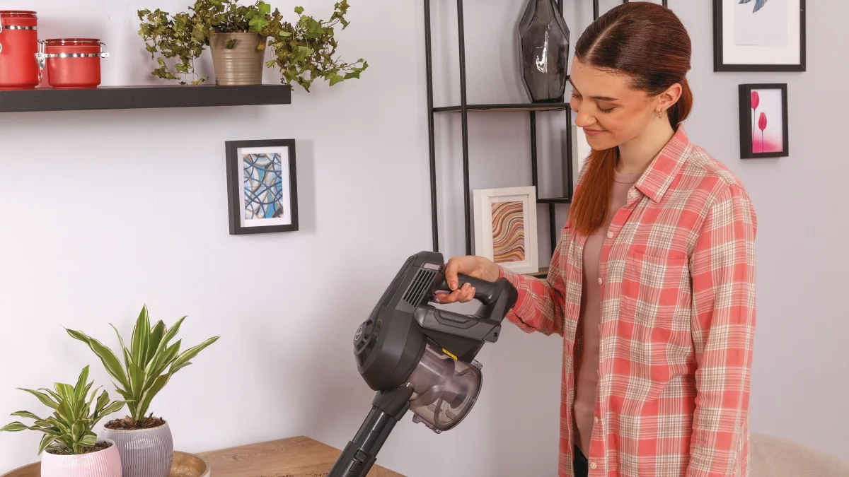 Hoover H-FREE HF103X 011 został zaprojektowany tak, aby ułatwić jego użytkowanie. Ergonomiczny uchwyt odkurzacza wyposażony jest w przycisk typu All In One, który pozwala szybko i wygodnie zmieniać ustawienia podczas pracy urządzenia. Za jego pomocą można aktywować lub wyłączać odkurzacz, zwiększać lub zmniejszać poziom mocy, zmieniać tryby pracy a także zwolnić blokadę rączki, by wysunąć z niej szczelinówkę. Wszystkie akcesoria są zawsze pod ręką dzięki możliwości przechowywania ich bezpośrednio w korpusie odkurzacza, oszczędzając miejsce i czas. Warto zwrócić również uwagę na ładowanie akumulatora. Dzięki wygodnemu rozwiązaniu możesz zaparkować odkurzacz w dowolnym miejscu, wyjąć baterię i po prostu wpiąć ją do ładowarki, wykorzystując najbliższe źródło prądu. Cały proces jest równie łatwy jak ładowanie telefonu. Po odkurzaniu, aby opróżnić pojemnik z kurzem wystarczy tylko jeden przycisk, by cała zawartość pojemnika wpadła prosto do kosza. Takie rozwiązanie to gwarancja higienicznego i komfortowego sprzątania, ponieważ nie naraża użytkownika na bezpośredni kontakt z pyłem i brudem.