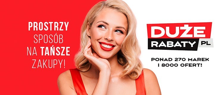 Serwis duzerabaty.pl to jedyne takie miejsce w sieci, które pozwala oszczędzić aż tyle pieniędzy! Nasza platforma proponuje obniżki w niemal 300 sklepach. Tysiące użytkowników skorzystało już z naszych ofert i mogło cieszyć się tanimi zakupami w Internecie. Nie pozwól, by najlepsze promocje przeszły ci koło nosa! Już dziś zapisz się do naszego newslettera. Dzięki temu uzyskasz ekskluzywny dostęp do najnowszych rabatów, wyprzedaży i promocji. Bycie fanem serwisu duzerabaty.pl się opłaca. Dzięki temu nie przegapisz żadnej gorącej okazji, ponieważ zyskasz pierwszeństwo informacji o największych promocjach publikowanych na stronie. Ponadto proponujemy unikatowe propozycje dla najwierniejszych użytkowników. Wystarczy, że zalogujesz się na stronie duzerabaty.pl i dasz się ponieść ofertom markowych zakupów w korzystnych cenach.