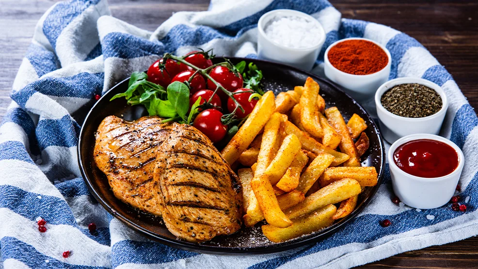 - kotlet drobiowy z puree i surówką