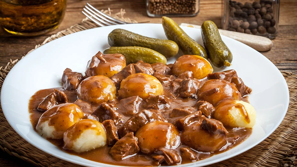 - pieczona karówka z kluskami śląskimi i zasmażaną kapustą - 21 zł