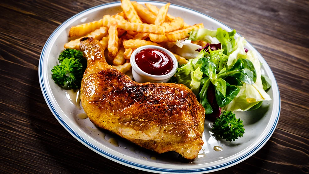 - kebab drobiowy, frytki, surówka, sos