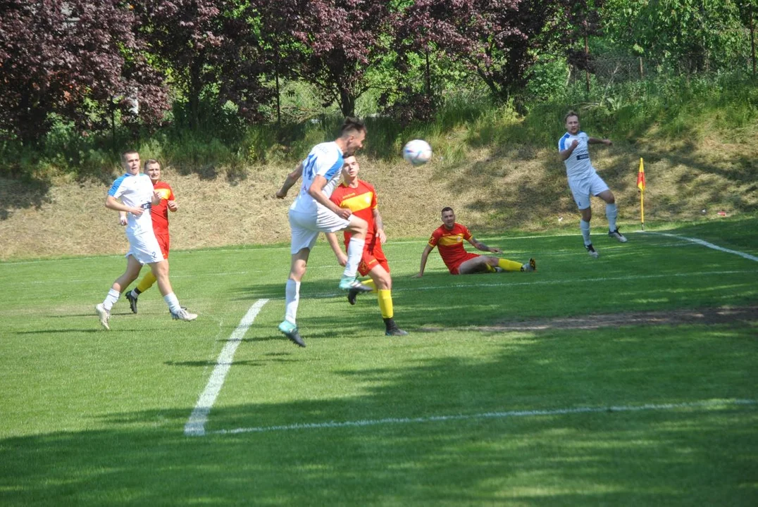Nie po raz pierwszy w tej rundzie podopieczni Łukasza Kaczałki od początku narzucili rywalom wysokie tempo i szybko objęli prowadzenie. Tym razem już w 4. minucie, po dośrodkowaniu z rzutu wolnego, swoje warunki fizyczne świetnie wykorzystał Mateusz Zięciak i głową umieścił piłkę w siatce, dając zespołowi z Cielczy prowadzenie. Potem w pierwszej połowie mecz był wyrównany. Żadnej ze stron nie udało się stworzyć realnego zagrożenia pod bramką rywali. Poza jednym przypadkiem. W 38. minucie LZS Cielcza był bliski podwyższenia prowadzenia. Najpierw groźny strzał na bramkę GKS-u oddał Eryk Kowalski, ale Marcin Wojciechowski wybił piłkę na rzut rożny. Po nim do uderzenia głową w polu karnym doszedł Jakub Nowak. Piłka minęła już Wojciechowskiego, ale w ostatniej chwili z linii bramkowej wybił ją Jakub Adamkiewicz.