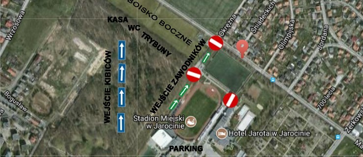 Jedynym parkingiem w dalszym ciągu będzie ten przy basenach. Nie ma mowy o parkowaniu przy ul. Maratońskiej i na drodze oddzielającej boisko ze sztuczną murawą od tych trawiastych. Zostanie ona zamknięta na czas meczów. Podobny los spotka tę między stadionem a boiskiem ze sztuczną nawierzchnią. Wszystkie zmiany są związane ze spełnieniem wymogów licencyjnych przez klub. Gdyby nie zostały uwzględnione - Jarota nie mogłaby rozgrywać meczów przy ul. Maratońskiej.