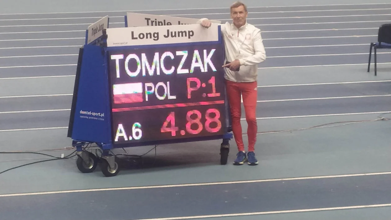 4 metry 88 cm - skok na taką odległośc zapewnił Janowi Tomczakowi pierwsze miejsce w trwajacych w Toruniu Halowych Mistrzostwach Świata Masters w lekkiej atletyce.