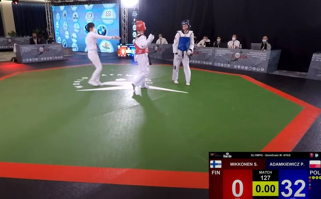 Reprezentantka Suomi nieoczekiwanie wyeliminowała groźną Belgijkę Raheleh Asemani, z którą Adamkiewicz przegrała ostatnio walkę o awans do strefy medalowej Mistrzostw Europy, także rozgrywanych w Bułgarii. Skandynawka nie wytrzymała presji i Patrycja Adamkiewicz nadspodziewanie łatwo uzyskała awans do finału turnieju oraz bilet do Tokio! Polka rozgromiła Mikkonen aż 32:0! Tym samym we wspaniałym stylu zapewniła sobie prawo występu w igrzyskach!