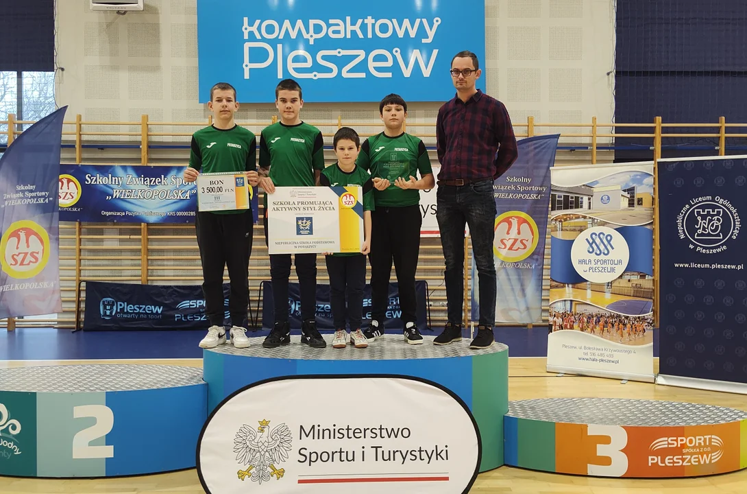 Przez cały rok szkolny 2023/2024 Niepubliczna Szkoła Podstawowa w Potarzycy brała udział w konkursie organizowanym przez Szkolny Związek Sportowy "Wielkopolska" pod nazwą "Szkoła Promująca Aktywny Styl Życia". W przesłanych sprawozdaniach końcowych jury konkursu oceniało m.in.: program i organizację zajęć wychowania fizycznego w szkole, ale także aktywność w zawodach, czy przeprowadzone dodatkowe eventy sportowe w roku szkolnym 2023/24. Na uroczystej gali podsumowującej konkurs, która odbyła się w Szkole Podstawowej nr 3 w Pleszewie, okazało się, że Niepubliczna Szkoła Podstawowa w Potarzycy została laureatem trzeciego miejsca w kategorii małych szkół do 150 uczniów! Dla małej szkoły z Potarzycy to ogromny sukces! Pamiatkową tablicę i grawerton oraz nagrodę finansową z przeznaczeniem na przeprowadzenie imprezy sportowo - rekreacyjnej, odebrał nauczyciel wychowania fizycznego Przemysław Wróblewski wraz z delegacją uczniów.