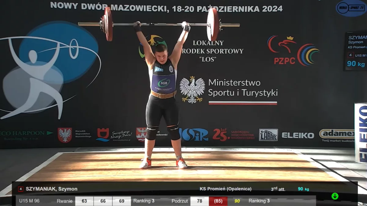 3. Szymon Szymaniak - KS Promień Opalenica - 159 kg (69 + 90)