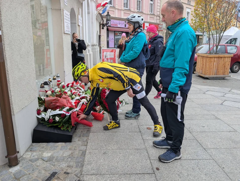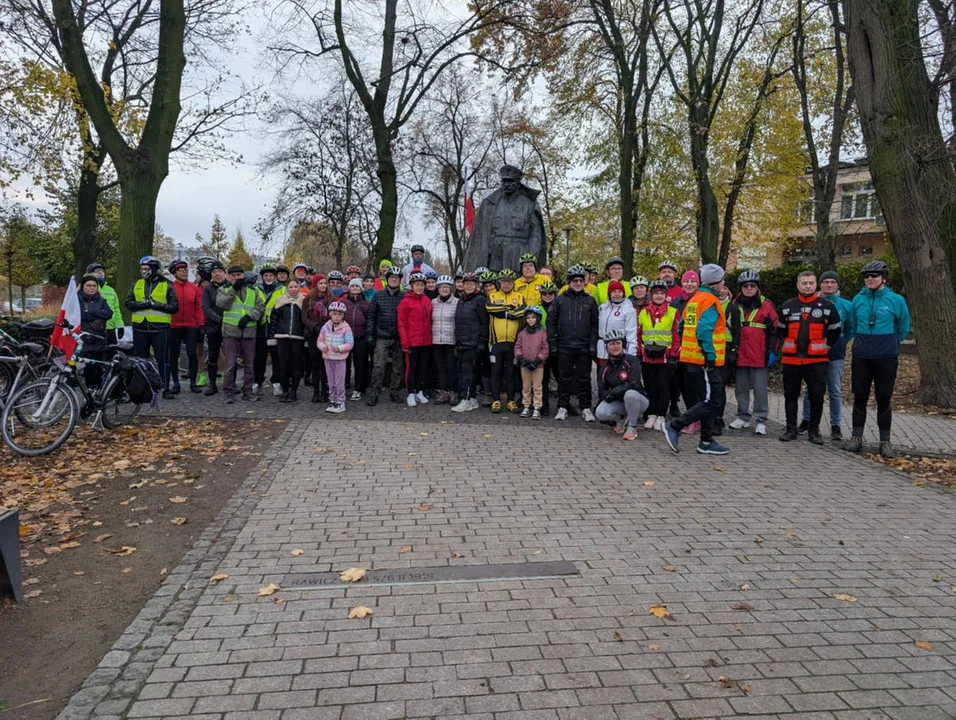 Przed odjazdem z rynku uczestnicy, razem z przedstawicielami stowarzyszenia RoweLOVE, złożyli wiązankę kwiatów pod tablicą upamiętniającą powstańców wielkopolskich. Zrobili sobie także pamiątkowe zdjęcie przy pomniku Zbigniewa Ostroróg‑Gorzeńskiego - dowódcy Latających Kompanii z okresu Powstania Wielkopolskiego. Obelisk znajduje się w parku przy ulicy Hallera.Warto podkreślić, że rowerzyści jadą z biało-czerwonymi flagami, podkreślając patriotyczny charakter wydarzenia.