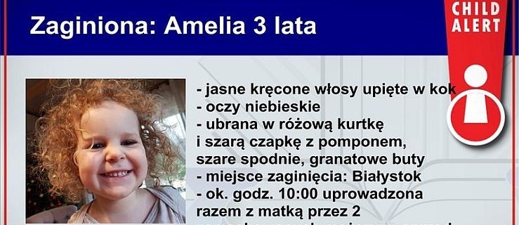 Policja apeluje o pomoc. Trwają poszukiwania 3-letniej Amelki i jej matki Natalii, które zostały uprowadzone dzisiaj rano około godziny 10.00.