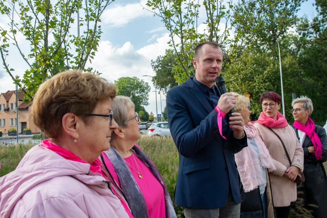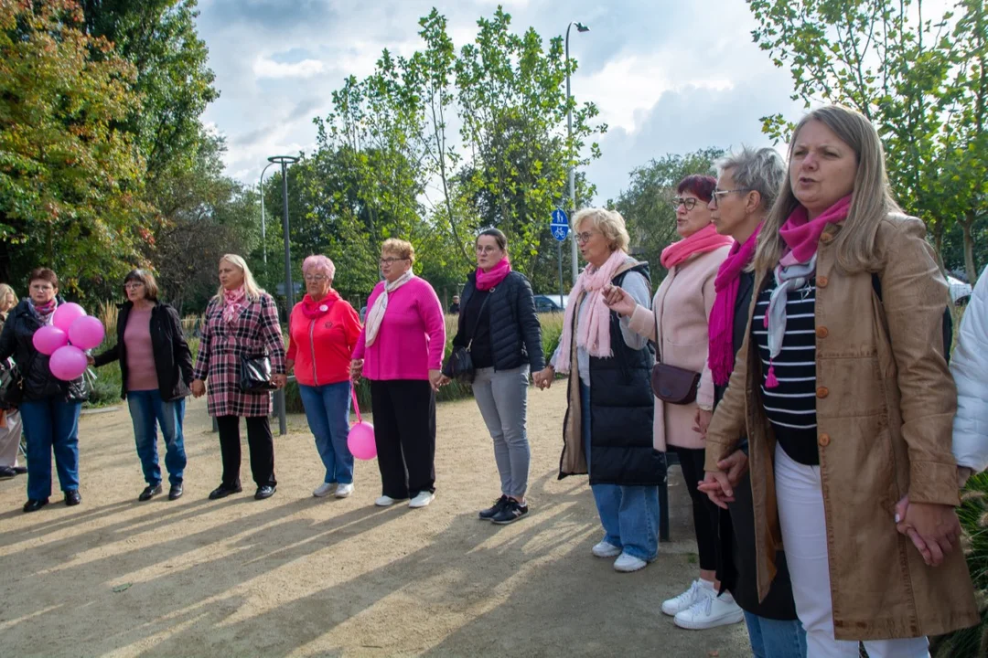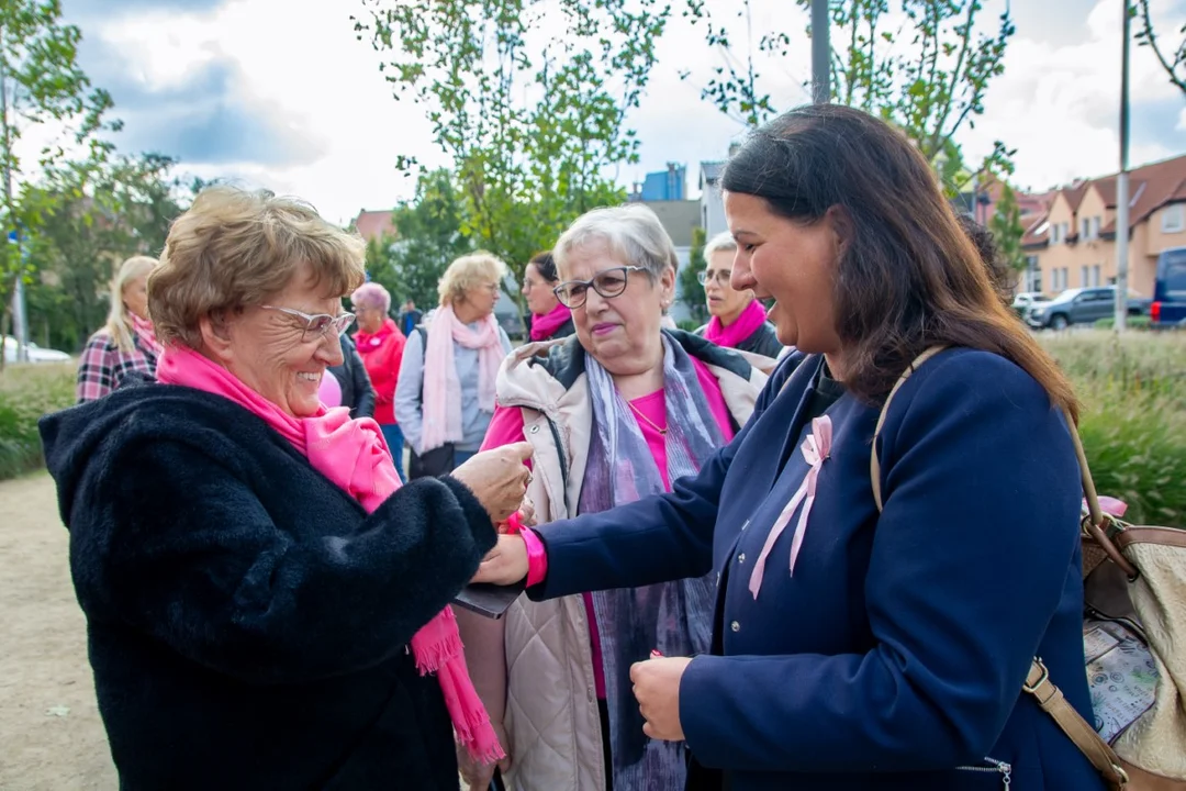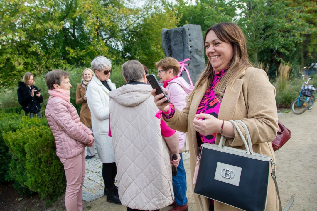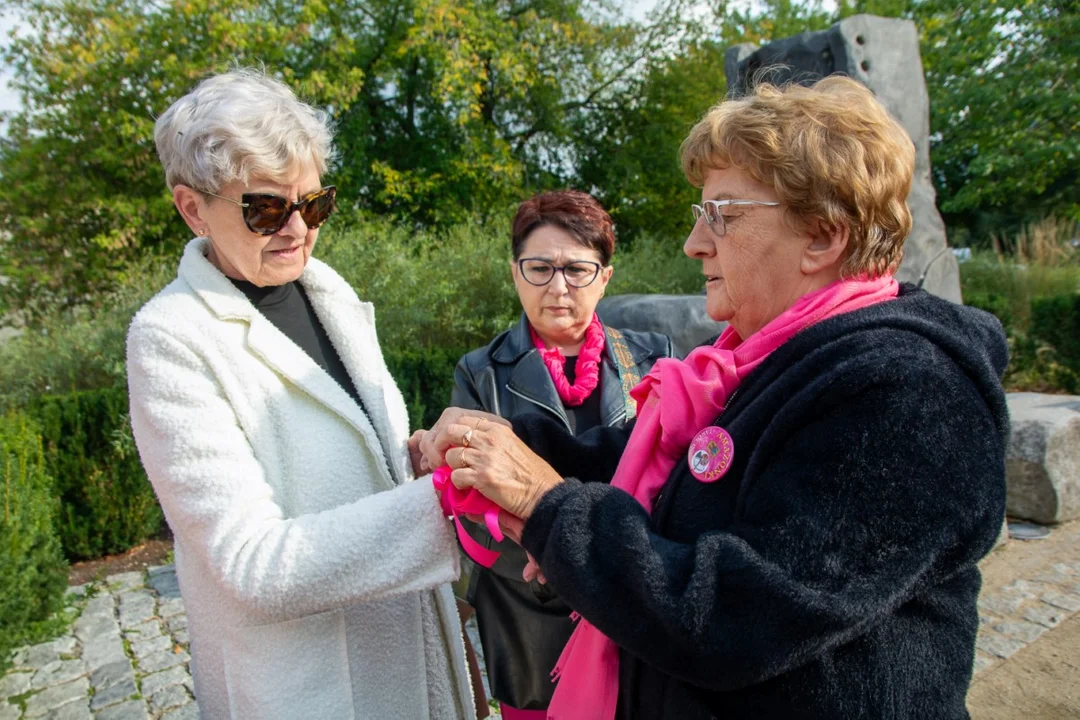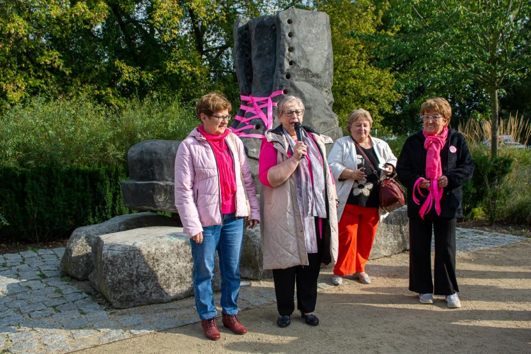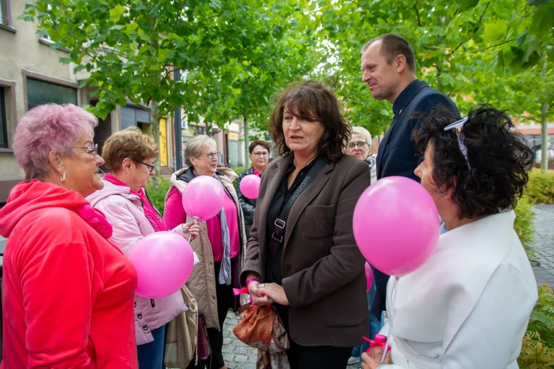 Pod pomnikiem Glana panie nie tylko zawiązały różową sznurówkę, ale odśpiewały hymn Amazonek. W tym miejscu głos zabrali zaproszeni goście m.in. posłanka Lidia Czechak i Piotr Piotrowicz, prezes Południowej Oficyny Wydawniczej. W trakcie swojego przemówienia starosta Mariusz Stolecki zapewnił, że na kolejną akcję zakupi sobie krawat w kolorze akcji ponieważ prezes Zakładu Usług Komunalnych w Jarocinie, Wojciech Wiszniewski przyszedł na październikową akcję już odpowiednio przygotowany. Wszyscy dziękowali za zaangażowanie na rzecz lokalnej społeczności. Jarociński Klub Amazonka nie tylko inicjuje wiele akcji, ale włącza się też w przedsięwzięcia realizowane na terenie powiatu. Ostatnio można było je spotykać m.in. na drugiej edycji Kongresu Kobiet.