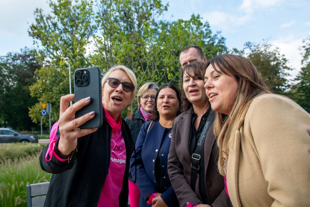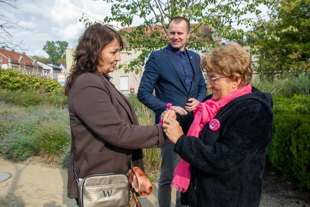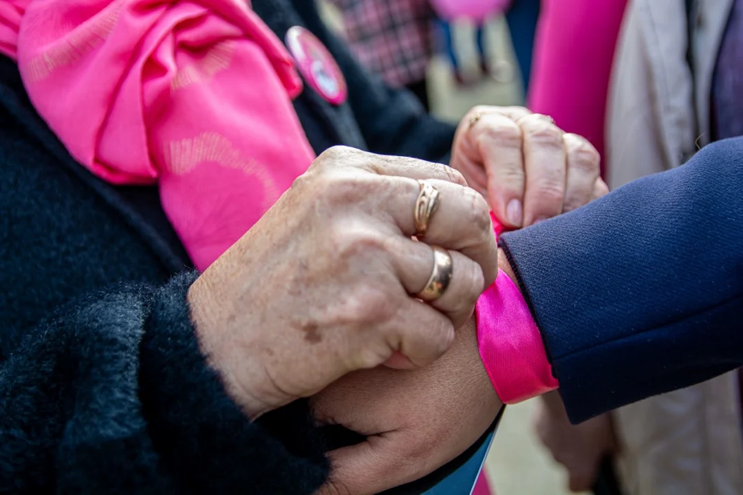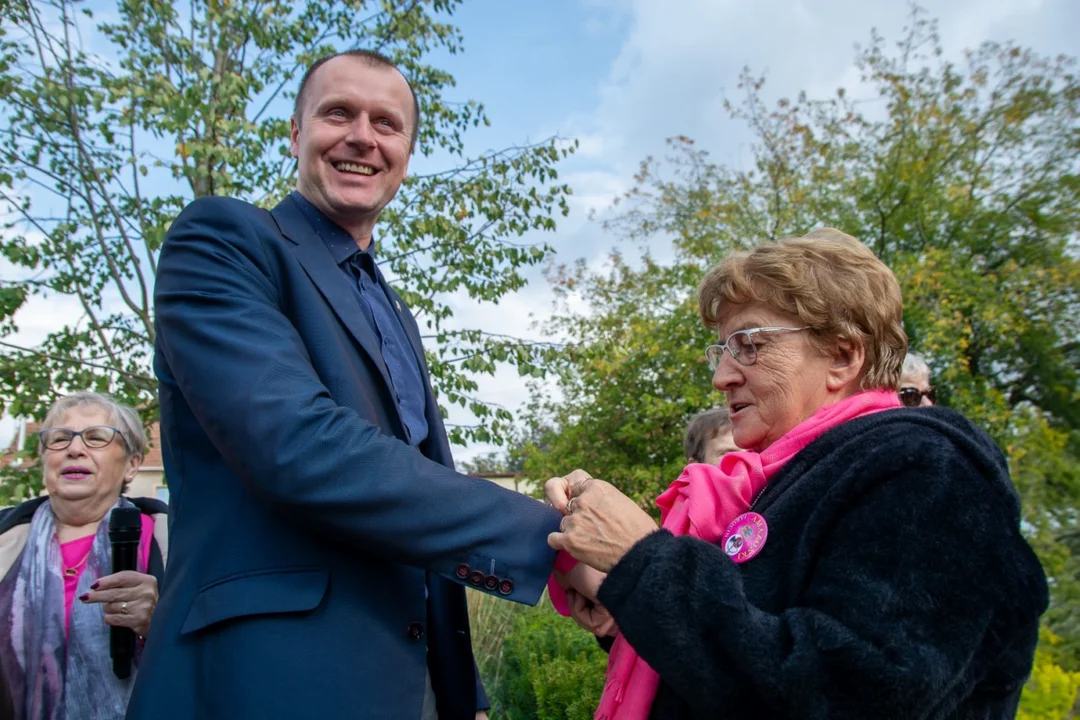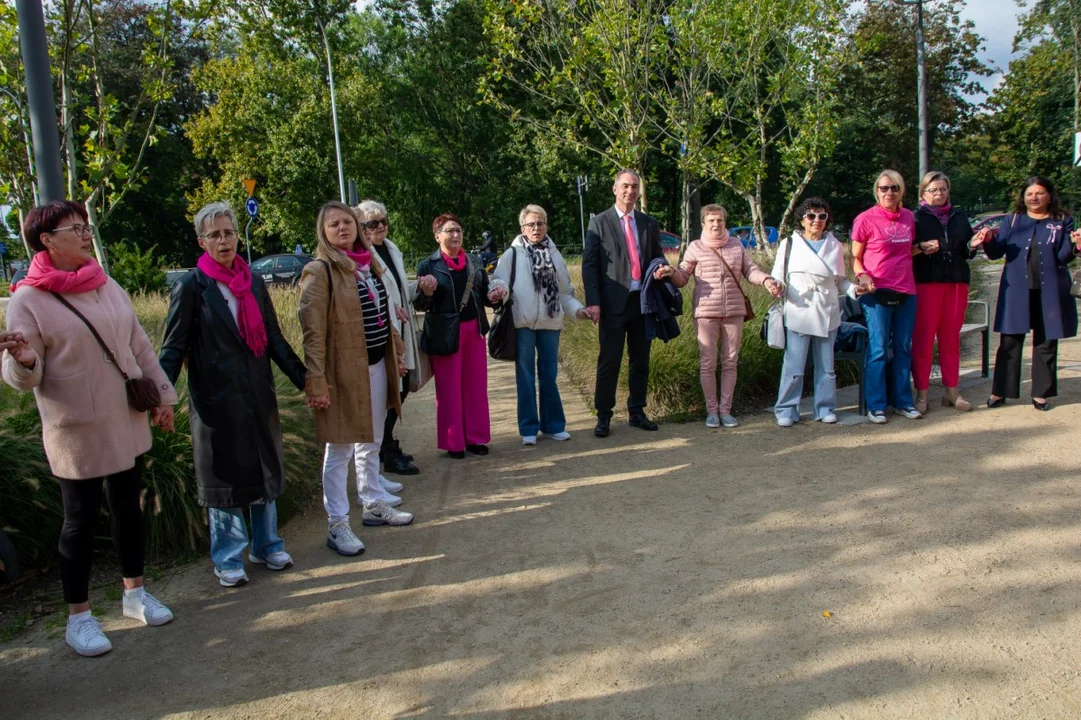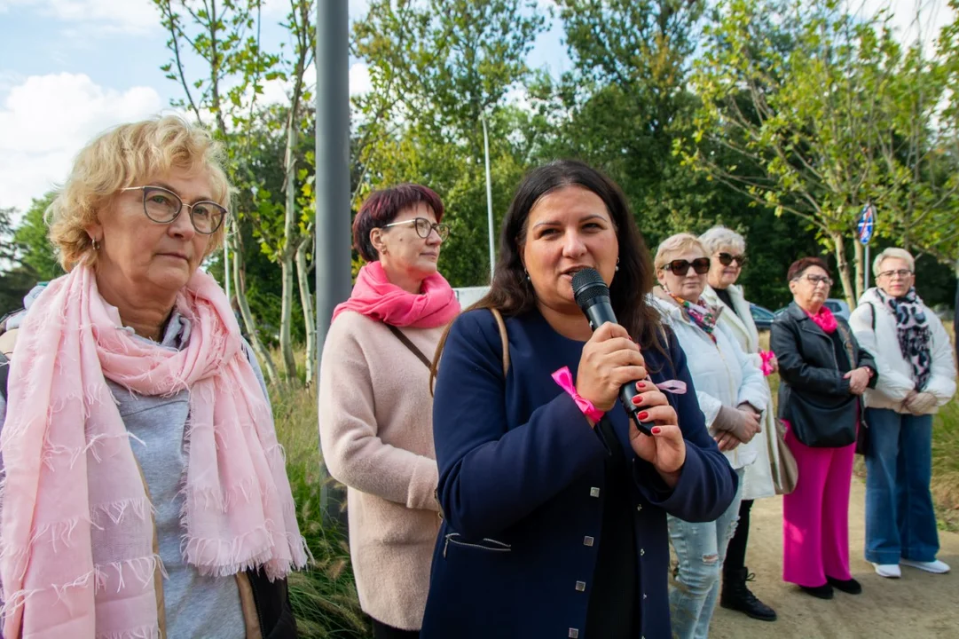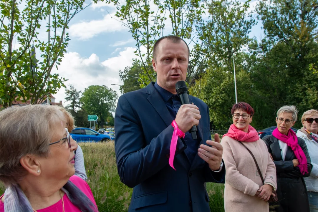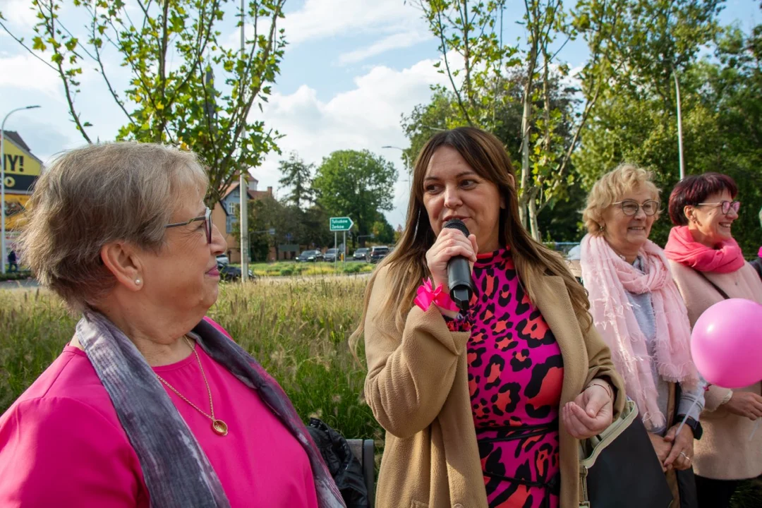 Pod pomnikiem Glana panie nie tylko zawiązały różową sznurówkę, ale odśpiewały hymn Amazonek. W tym miejscu głos zabrali zaproszeni goście m.in. posłanka Lidia Czechak i Piotr Piotrowicz, prezes Południowej Oficyny Wydawniczej. W trakcie swojego przemówienia starosta Mariusz Stolecki zapewnił, że na kolejną akcję zakupi sobie krawat w kolorze akcji ponieważ prezes Zakładu Usług Komunalnych w Jarocinie, Wojciech Wiszniewski przyszedł na październikową akcję już odpowiednio przygotowany. Wszyscy dziękowali za zaangażowanie na rzecz lokalnej społeczności. Jarociński Klub Amazonka nie tylko inicjuje wiele akcji, ale włącza się też w przedsięwzięcia realizowane na terenie powiatu. Ostatnio można było je spotykać m.in. na drugiej edycji Kongresu Kobiet.