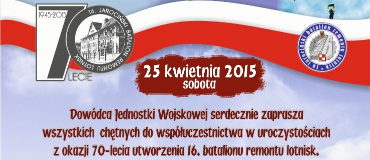 Dowódca jednostki wojskowej w Jarocinie zaprasza chętnych do udziału w uroczystościach z okazji 70-lecia utworzenia 16. jarocińskiego batalionu remontu lotnisk.