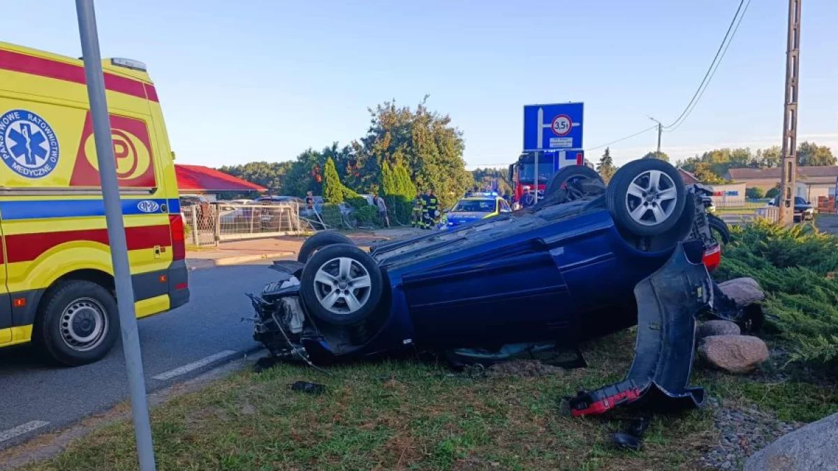 Dachowanie auta w Sierszewie. Trzy osoby trafiły do szpitala