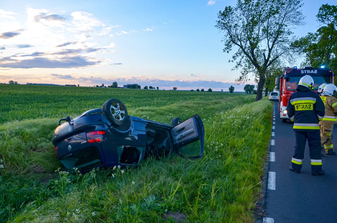 Samochód osobowy marki volkswagen dachował i znalazł się poza drogą. Jak podaje dyżurny PSP Jarocin, kierowca prawodpowobnie udawał się do miejsca zamieszkania.