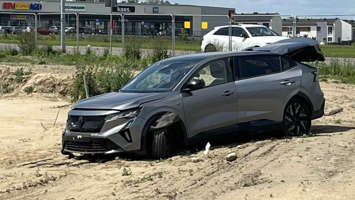Do sieci trafiło wideo z wideorejestratora auta, które stało na skrzyżowaniu. Widać na nim jak kierowca renaulta z impetem wpada na środek ronda. Auto wybija się w powietrze, przelatuje kilka metrów i spada na koła.