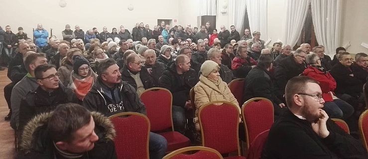 Na zebranie przyszło ponad 130 osób. Jest inwestor, a także sołtys i radny miejski. Trwa ożywiona dyskusja dotycząca między innymi ekologicznej produkcji jaj.