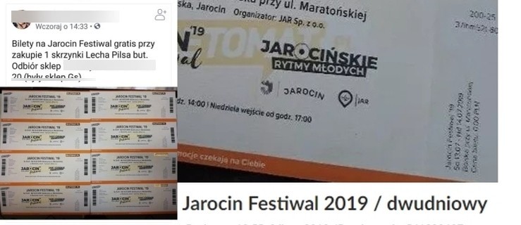 Jeden z naszych czytelników deklaruje, że udało mu się kupić dwudniowy karnet za... 50 zł. Furorę w sieci robi w ostatnich dniach często komentowane ogłoszenie pracownicy jednego ze sklepów spożywczych w Krotoszynie. „Bilety na Jarocin Festiwal gratis przy zakupie jednej skrzynki Lecha Pils” - czytamy w anonsie [ZOBACZ GALERIA].