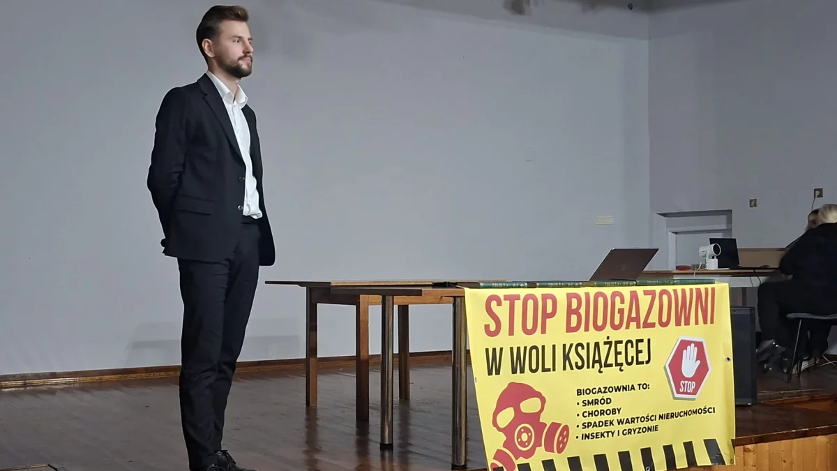 Stefan Kozłowski, sołtys Woli Książęcej, którego syn jest jednym z właścicieli działki, na której ma powstać biogazownia poinformował obecnych na sali, że zrobi wszystko by zablokować inwestycję.