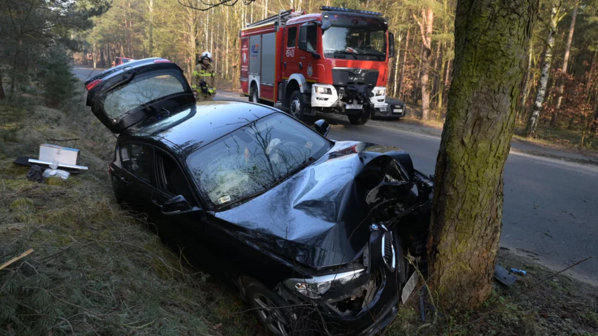 Pracowicie rozpoczęła się sobota dla jarocińskich służb ratunkowych. Rano zostały wezwane na ul. Osiedle Zdrój w Wilkowyi. Kierująca BMW uderzyła w drzewo.