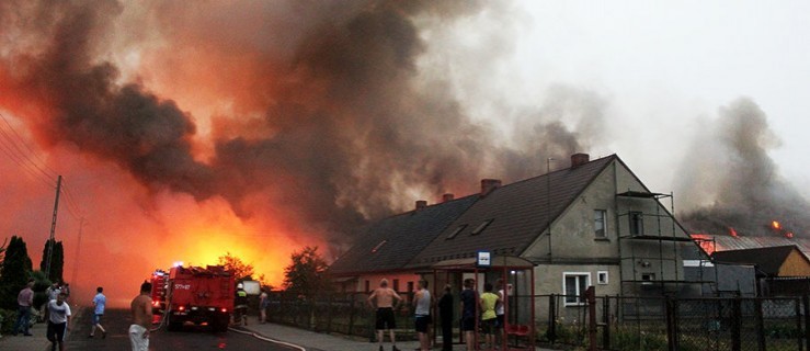 Wczoraj około godz. 18.00 doszło do pożaru budynków gospodarskich. W płomieniach stanęły co najmniej cztery budynki gospodarcze, w tym dwie duże obory na kilkaset sztuk bydła. Świadkowie twierdzą, że prawdopodobną przyczyną pożaru było zwarcie linii energetycznej w wyniku silnego wiatru.