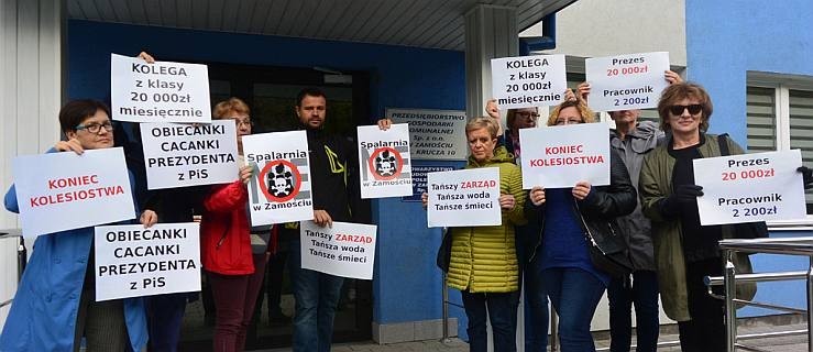 Gdy przewodniczący rady nadzorczej odczytywał na konferencji oświadczenie, w którym „pudrował” sytuację w PGK, przed siedzibą spółki oburzeni mieszkańcy Zamościa stanęli z transparentami: „Koniec kolesiostwa”, „Obiecanki cacanki prezydenta PiS”, „Kolega z klasy – 20 000 zł miesięcznie” czy „Tańszy zarząd. Tańsza woda. Tańsze śmieci”. Banery oddawały nastroje panujące w mieście i wśród załogi PGK po publikacji tekstów, w których ujawniliśmy – jak napisał w doniesieniu złożonym do prokuratury jeszcze we wrześniu Franciszek Josik, były wieloletni prezes spółki – „przekręty podczas przetargów, jakich dopuścił się zarząd”.