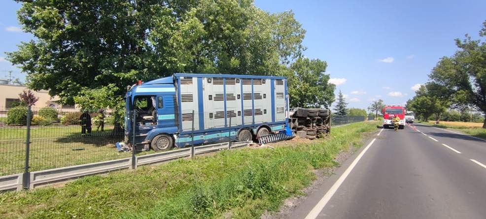 Trwa oczekiwanie na zastępczy pojazd, do którego zostaną przeładowane świnie. W zdarzeniu nikt nie ucierpiał.