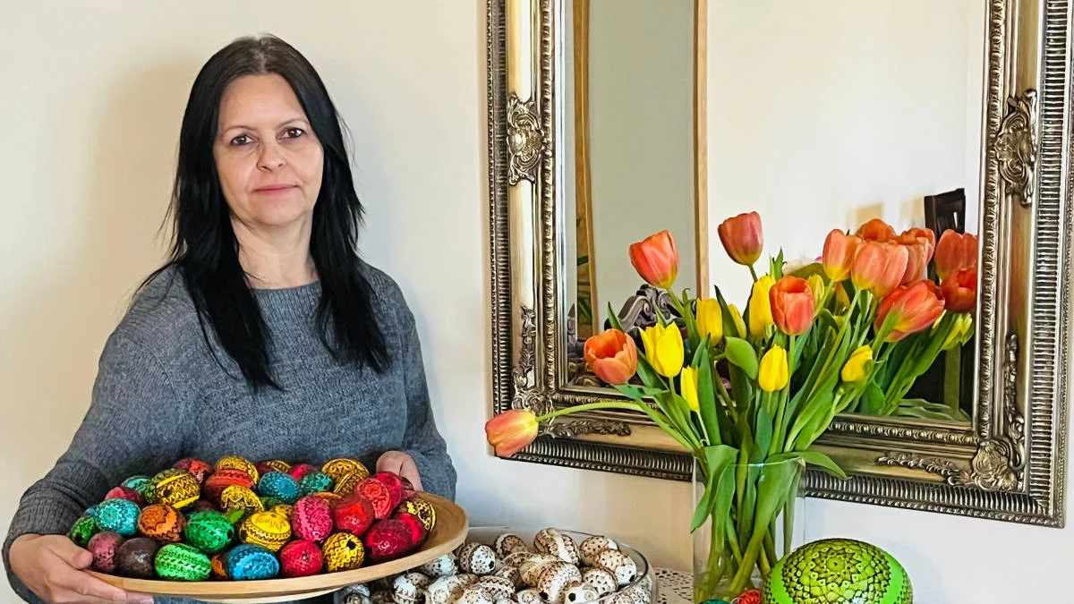 Iwona Czeszyk na co dzień uczy wychowania fizycznego w Szkole Podstawowej w Nowym Mieście. Ma jednak pasję, o której wie niewielkie grono. Co roku przed Wielkanocą jej kuchnia zamienia się w pracownię. Powstaje tutaj zwykle od 50 do 100 pisanek. Każda z nich jest pokryta misternym, koronkowym wzorkiem. W domu pisanki można zauważyć w wielu miejscach. Te, które wykonała przed laty zapełniają szklane naczynia. Ostatnie, tegoroczne dzieła, które - jak się później okazuje, tworzy już od stycznia - wyeksponowane są na stole.