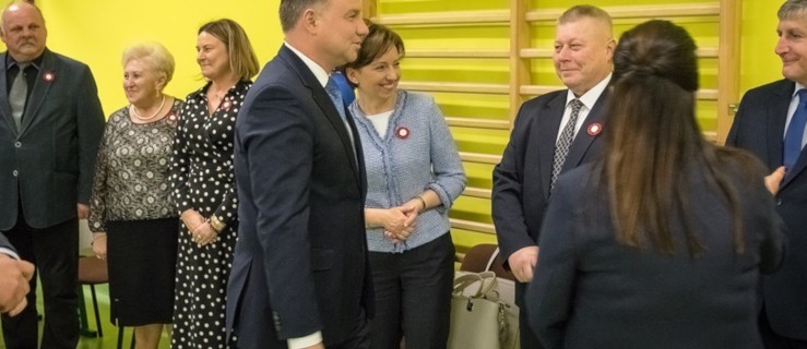 Honory gospodarza pełniła starosta Lidia Czechak. To ona - w towarzystwie Witolda Bierły, dyrektora Zespołu Szkół Ponadpodstawowych, gdzie odbyła się wizyta, przywitała Andrzeja Dudę.