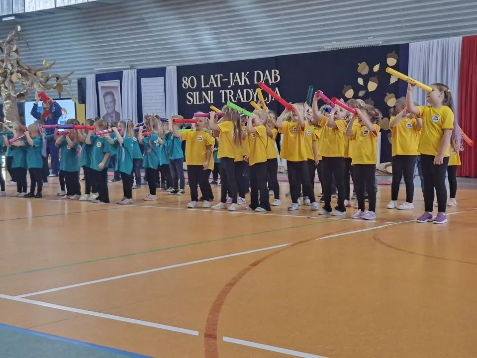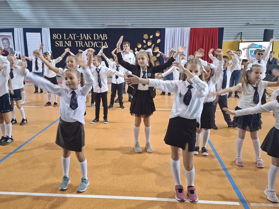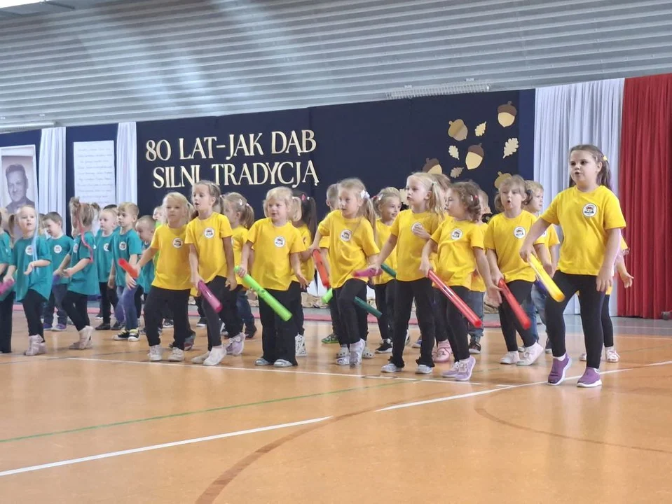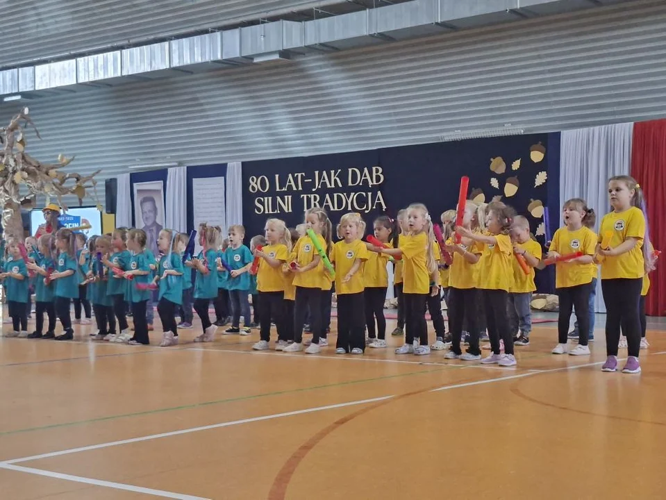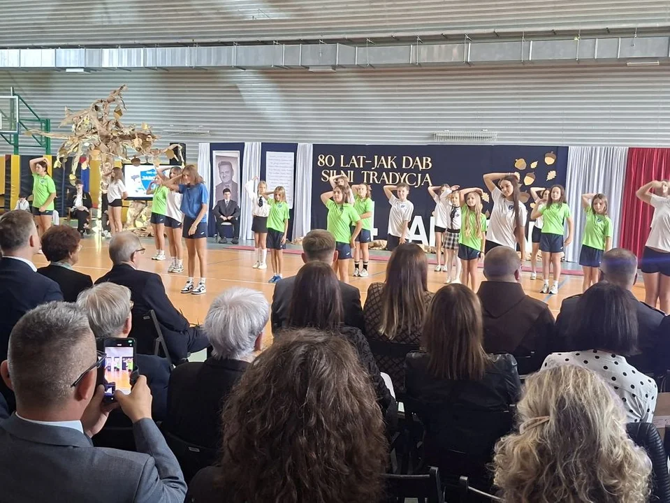 Podczas jubileuszowej gali przedszkolaki i uczniowie miejscowej szkoły zachwycili publiczność występami artystycznymi. Barwny, starannie przygotowany program spotkał się z ogromnym aplauzem publicznośći, a młodzi artyści przenieśli widzów w czasie – od początków powstania „czwórki”, przez budowę sali gimnastycznej aż po współczesne czasy.