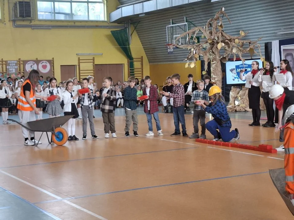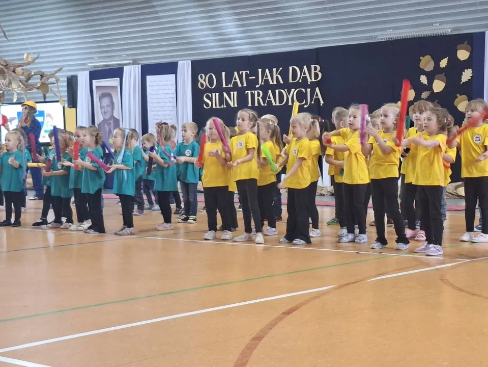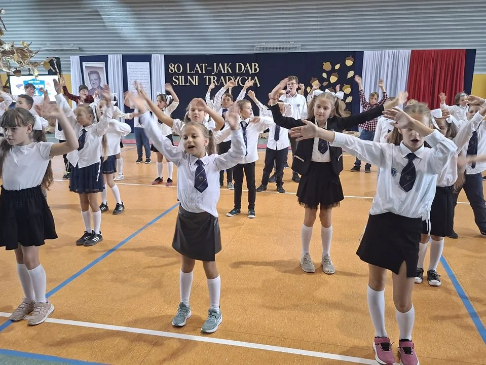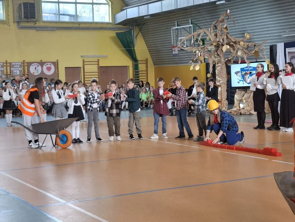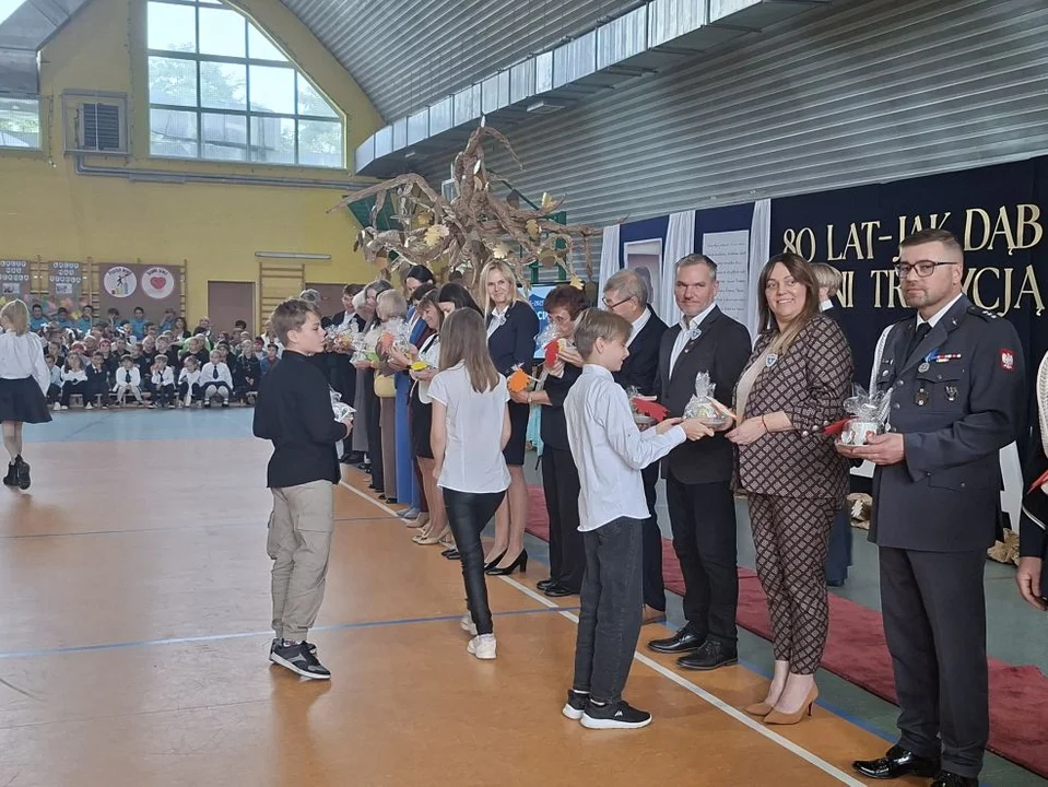 Podczas jubileuszowej gali przedszkolaki i uczniowie miejscowej szkoły zachwycili publiczność występami artystycznymi. Barwny, starannie przygotowany program spotkał się z ogromnym aplauzem publicznośći, a młodzi artyści przenieśli widzów w czasie – od początków powstania „czwórki”, przez budowę sali gimnastycznej aż po współczesne czasy.