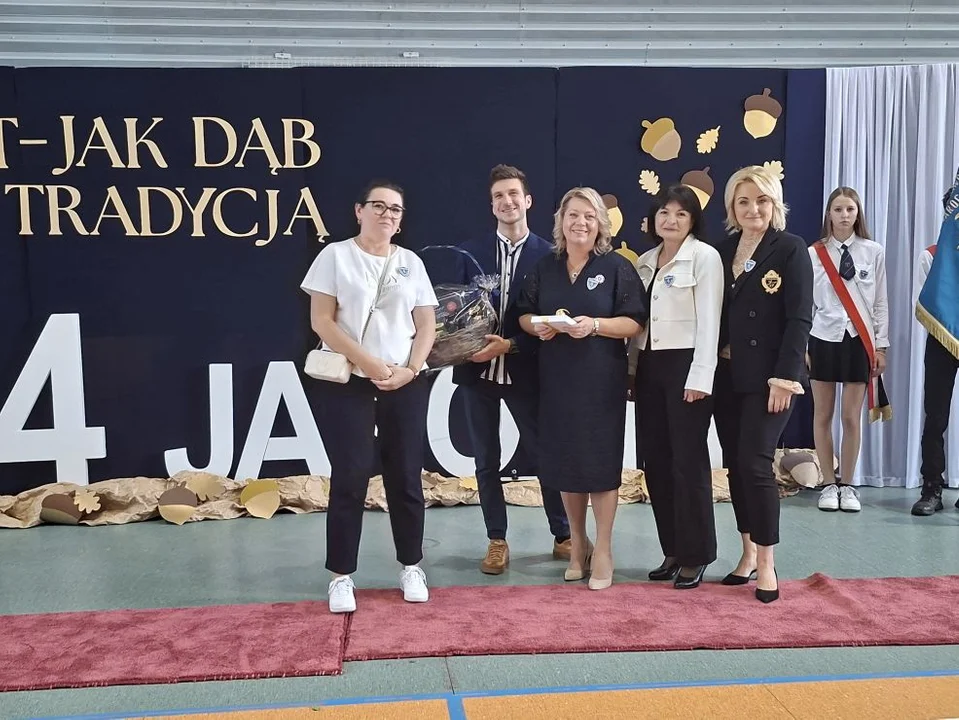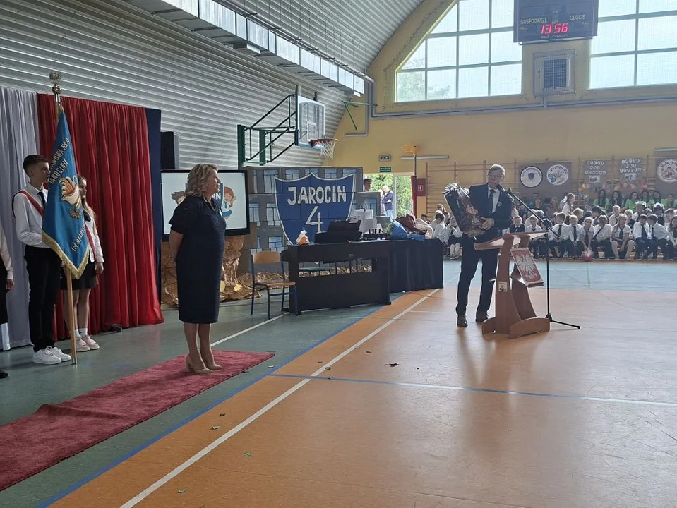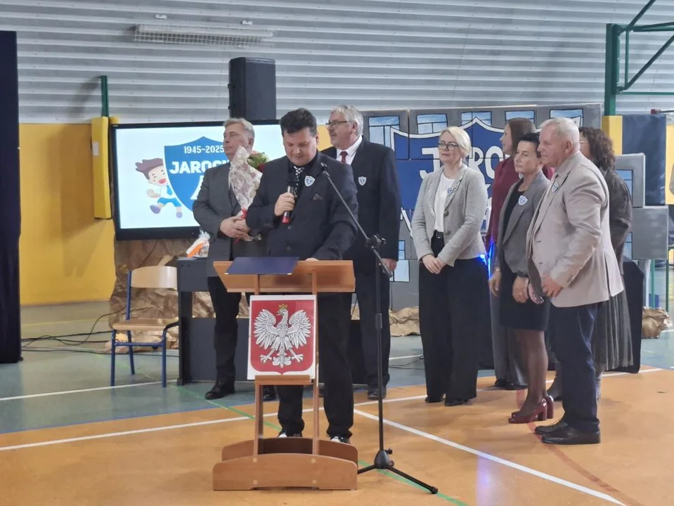 Po części artystycznej nadszedł czas na oficjalne wystąpienia, gratulacje i życzenia. Kolejka do złożenia podziękowań była długa. Nie zabrakło serdecznych słów, wspomnień i symbolicznych upominków. Gratulacje złożył także Piotr Piotrowicz, prezes Południowej Oficyny Wydawniczej, wydawca Gazety i portalu, który jest absolwentem jarocińskiej czwórki.
