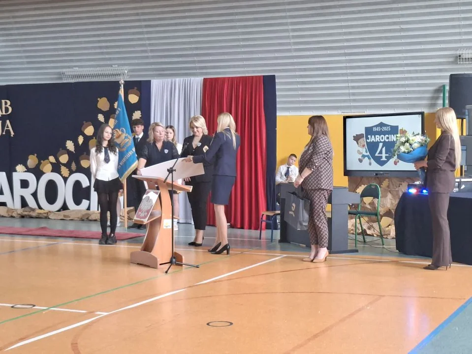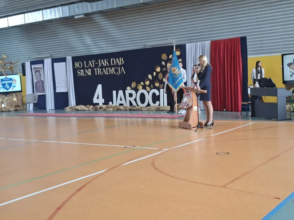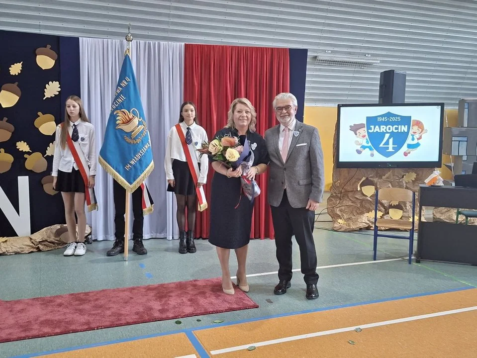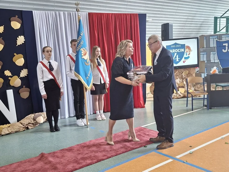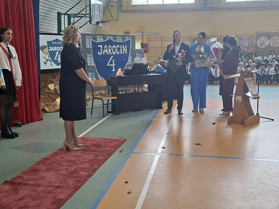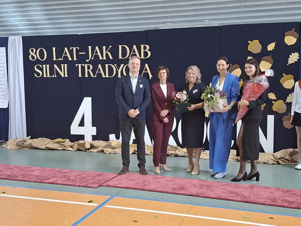 - Dzisiejszy dzień jest naprawdę wyjątkowy. Świętujemy 80-lecie naszej szkoły - miejsca, które przez osiem dekad było sercem naszej społeczności. Jestem z tą szkołą związana od 45 lat, bo właśnie 45 lat temu przyszłam tutaj jako uczennica pierwszej klasy. Nie myśląc o tym, że będę kiedys dyrektorem - marząc, że będę nauczycielem - mówiła wzruszona dyrektor "czwórki" Iwona Tobolska.