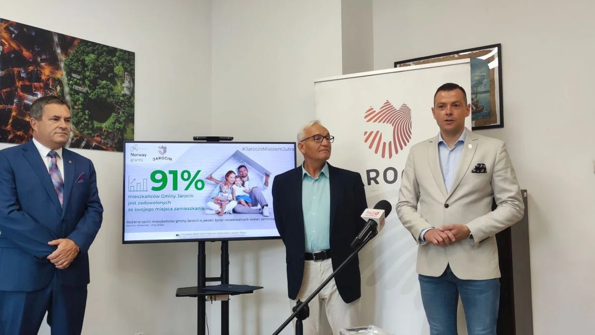 W konferencji udział wzięli Adam Pawlicki - burmistrz Jarocina, Bartosz Walczak - wiceburmistrz Jarocina oraz dr Jan Ermanowicz z Pracowni Badań Opinii Publicznej Społeczności Lokalnej i Rynku w Jarocinie, która była odpowiedzialna za przeprowadzenie badania.