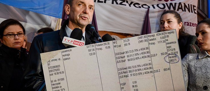 Nauczyciele od początku domagali się podwyżki wynagrodzenia o 1.000 złotych ze spłatą od 1 stycznia. Później żądania zostały obniżone do podwyżki wynagrodzeń o 30% od 1 stycznia tego roku. Zaproponowano również uwolnienie dodatku stażowego ponad ustawowy limit określony na 20%. 30% podwyżki to dla nauczyciela stażysty kwota na poziomie 720 - 730 złotych miesięczne, a dla nauczyciela dyplomowanego - 990 złotych.