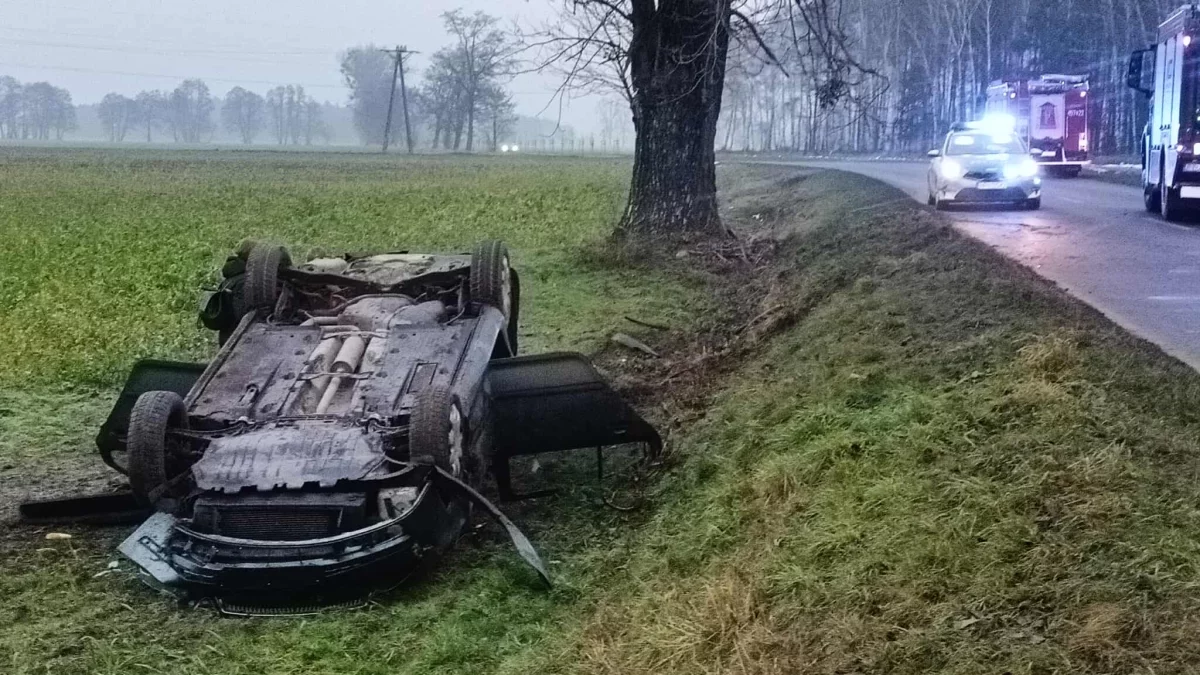 Samochód dachował i zatrzymał się poza jezdną. Na miejsce wezwano między innymi strażaków i policję. Nieoficjalnie - dwie osoby jadące autem nie zostały poszkodowane.